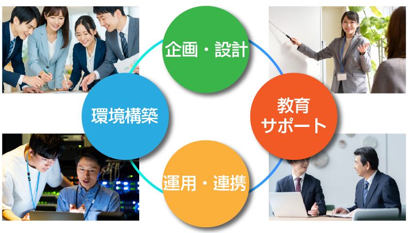 社内のAI活用が自走化ができるように、総合的な支援をいたします。