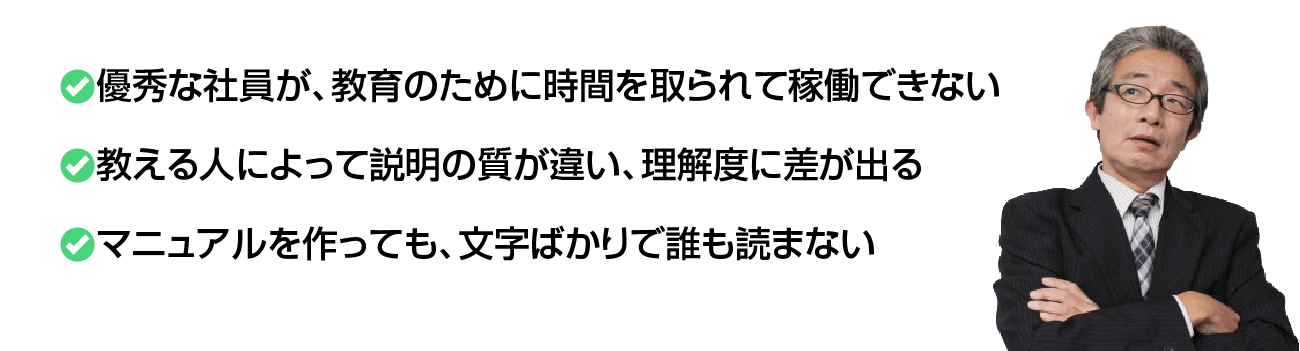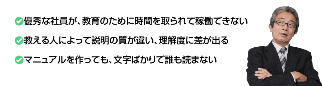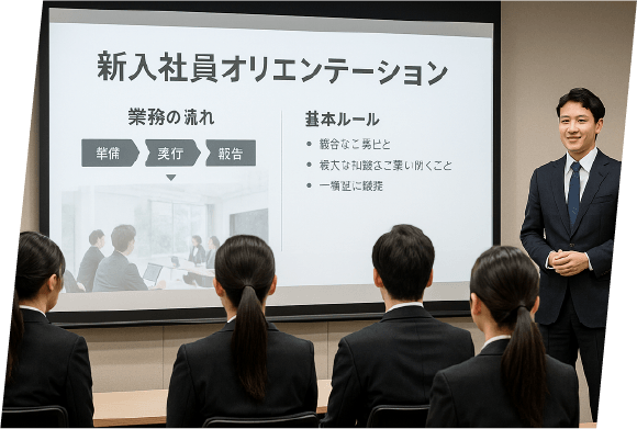 社内ルールや業務手順を統一化。先輩社員の時間を奪うことなく、教育の質を均一に保ち即戦力化を促します。