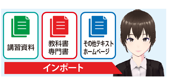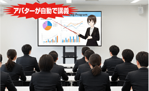 PDF・PowerPoint・マニュアル等を 読み込み、アバターが講義や 説明を自動で実施。