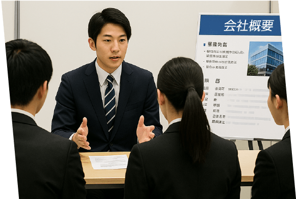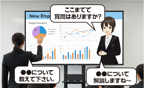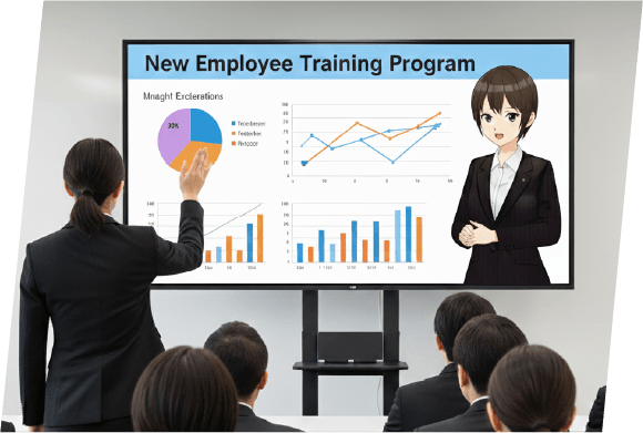 採用説明会・新人研修・社内教育・セミナーまで、 アバターが自動で“話して・教えて・答える” 新しい学習体験をつくります。