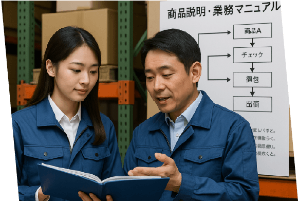 新商品の特徴や複雑なマニュアルも分かりやすく解説。現場スタッフはスマホでいつでも確認でき、知識が定着します。